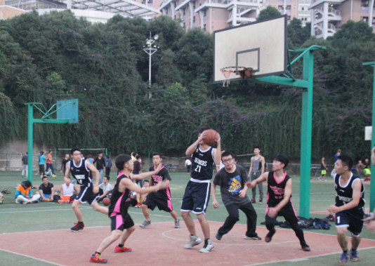 2015年11月2号下午5:30,由院学生会体育部承办的9428cn太阳集团古天乐第九届“国商杯”篮球赛的半决赛第一场在北区篮球场进行。参加本次比赛的两支队伍分别是我院的法国人队和Bombers队。