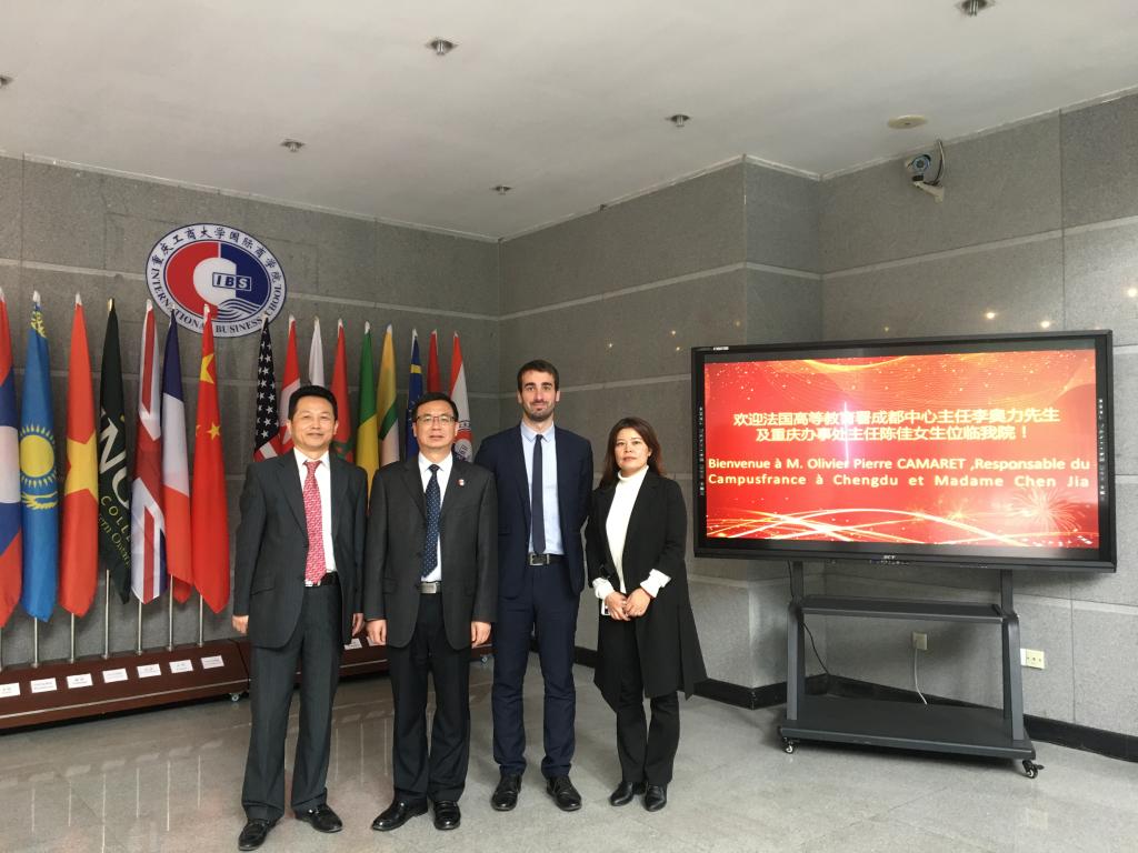 11月15日,法国驻成都总领事馆法国高等教育署主任李奥力先生和法国高等教育署重庆办事处主任陈佳女士来到我院进行法国高等教育的宣讲会并介绍赴法面签注意事项。
