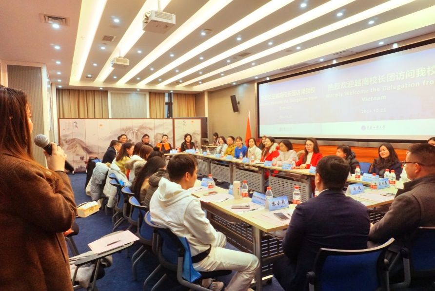 202412月25日,由越南11所学校的21位校长组成的代表团访问我校9428cn太阳集团古天乐院长詹川受邀参与了座谈。本次座谈在学校图书馆智慧教室举行,旨在促进中越在文化和教育等多方面的合作与交流,鼓励留学生往来。会上,詹川院长向与会来宾介绍了我院办学特色,特别是在来华留学方面取得的成果。