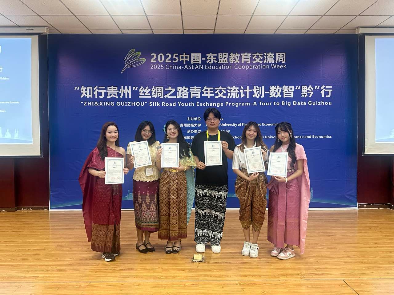 2025年6月23日,我院中泰2+26名学生参加由贵州财经大学主办、全球电商发展教育联盟协办的2025中国-东盟教育交流周“知行贵州”丝绸之路青年交流计划该活动邀请了重庆工商大学、重庆师范大学、四川外国语大学来自俄罗斯、泰国、日本、斯里兰卡、越南12名留学生参加。