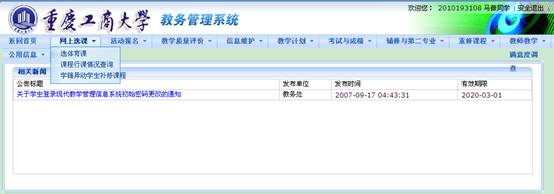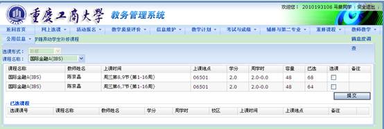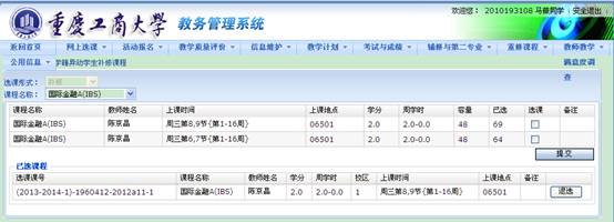 2.     选课期间结束前,学生可以补选和退选,选课时间截止后将不能再进行相应的操作;