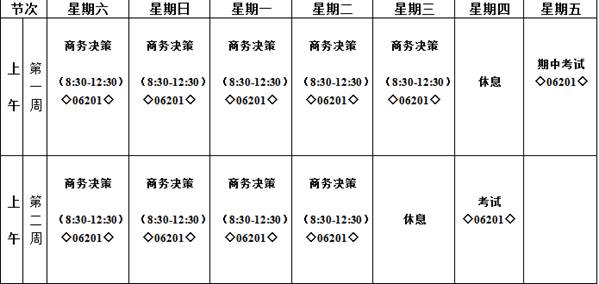 1.  行课时间:周一到周日上午8:30-12:30