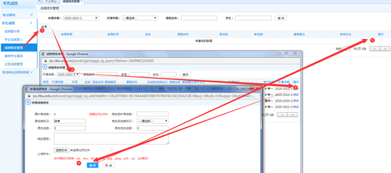 上学期因各种原因需要修改成绩的老师,请于2月24日-3月9日期间在教务系统操作提交申请并及时送审至审核人复核(具体操作详见附图),过期将无法再次修改。