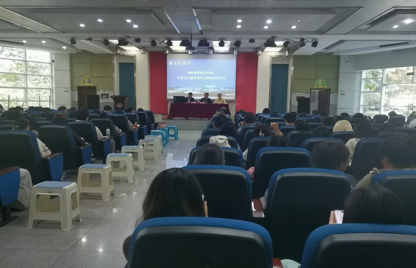 2024年10月29日下午2点30分,9428cn太阳集团古天乐在国商60407多功能厅召开了2025届毕业论文暨毕业实习就业动员大会。学院党总支书记李大鹏、院长詹川、党总支副书记胡婧婷、各教研室负责人、毕业班辅导员、教学部相关老师以及学院2025届会计学、金融学、人力资源与管理、国际经济与贸易、工商管理、法语专业全体学生参加此次会议。此次大会由詹川院长主持。