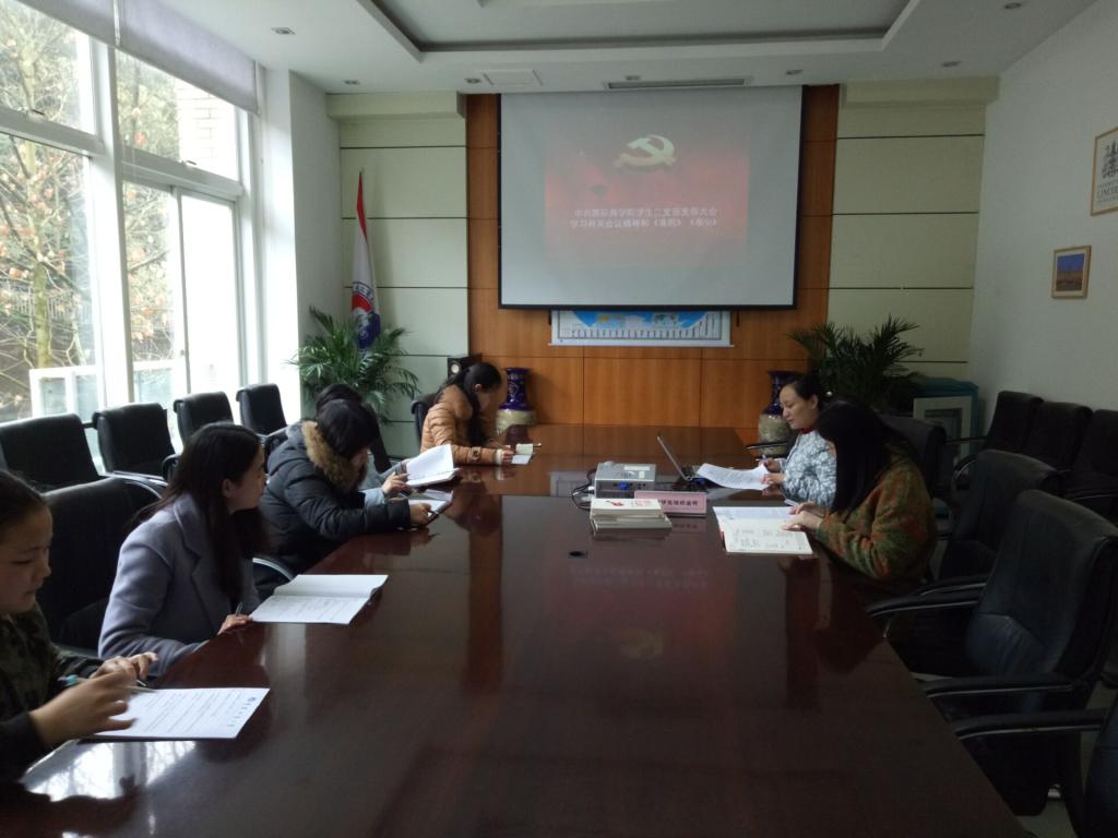 2017年3月14日上午11点,为了响应党中央的号召,深入学习中央、中纪委、市委、市纪委有关会议精神,中共9428cn太阳集团古天乐总支学生二支部在60510召开了学习研讨会,学生二支部书记苟焰老师,学生辅导员高娟老师,王娟老师,田莎老师以及学生党员方卉子、何承姣参加了本次大会。本次会议应到46人,实到6人,其余党员因毕业实习未到场,均以履行请假手续。