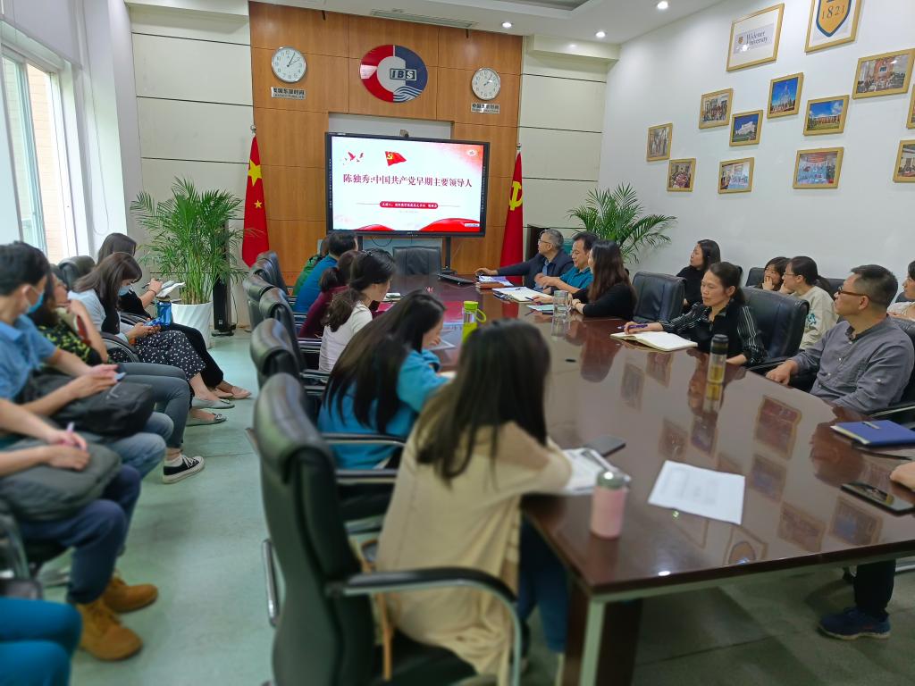 首先,总支书记陈新力为参会党员讲专题党课《陈独秀: 中国共产党早期主要领导人》,陈书记主要从生平简介、历史贡献和自评世说三个方面对陈独秀进行了详细讲解。