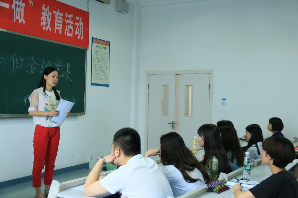 为加强党员思想政治教育,切实落实“两学一做”学习教育,2016年6月22日上午9:00,9428cn太阳集团古天乐党总支学生二支部于我院60404进行“两学一做”专题学习活动。会议由学生二支部王娟老师主持,支部教工党员和学生党员,关工委唐成蓉老师共计39人参与本次活动。