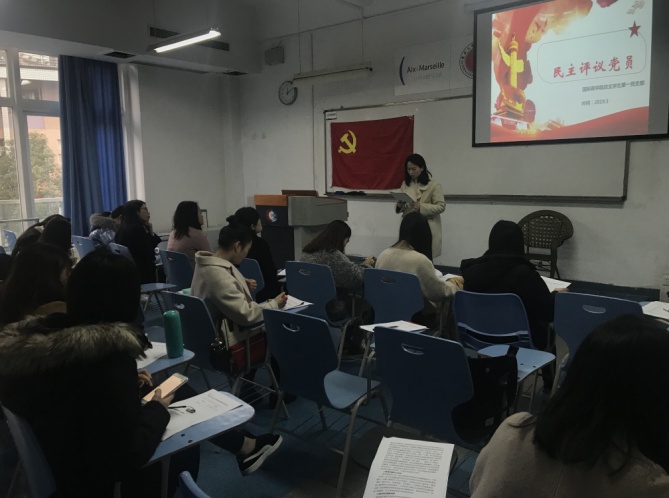 中午十二点各位党员老师和党员同学下课后都准时到达教室参与民主评议会。本次评议会的主题是学用新思想、建功新时代。突出政治功能和组织力,严格党员教育管理监督,强化创新理论武装,树牢“四个意识”,坚定“四个自信”,坚决做到“两个维护”,勇于担当作为,以求真务实作风坚决把中央、市委和学校党委部署要求落到实处。