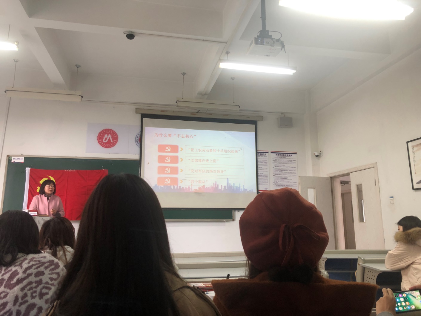 党支部的同学们也轮流朗读了《用新时代中国特色社会主义社会思想武装全党》,例如谭欣雨同学朗读到:我们党是高度重视理论建设和理论指导的党,强调理论必须同实践相统一.我们坚持和发展中国特色社会主义,必须高度重视理论的作用,增强理论自信和战略定力.在新的时代条件下,我们要进行伟大斗争、建设伟大工程、推进伟大事业、实现伟大梦想,仍然需要保持和发扬马克思主义政党与时俱进的理论品格,勇于推进实践基础上的理论创新.时代是思想之母,实践是理论之源.我们要在迅速变化的时代中赢得主动,要在新的伟大斗争中赢得胜利,就要在坚持马克思主义基本原理的基础上,以更宽广的视野更长远的眼光来思考和把握国家未来发展面临的一系列重大战略问题,在理论上不断拓展新视野、作出新概括。