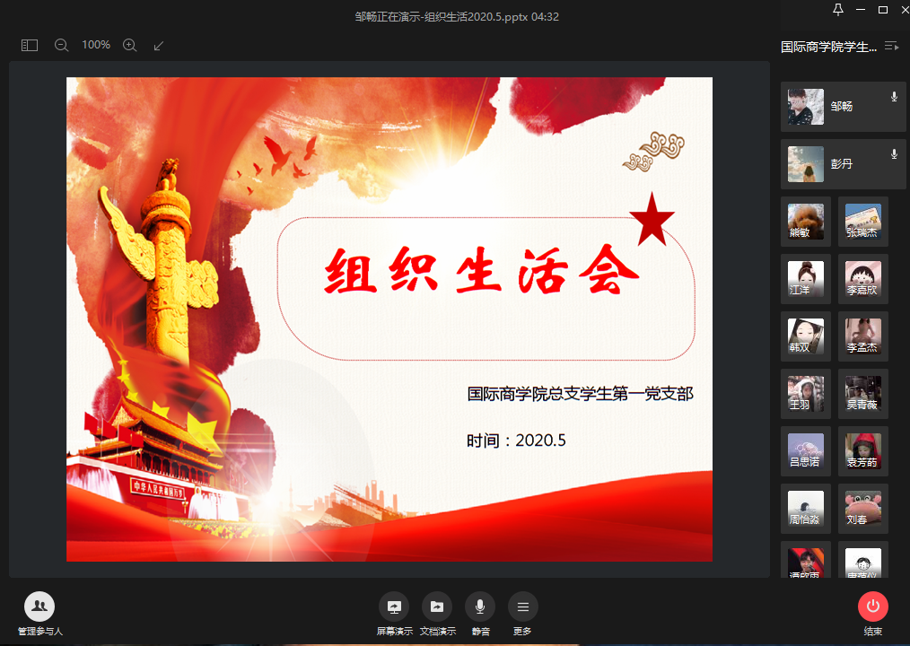 图为:9428cn太阳集团古天乐学生第一党支部五月组织生活