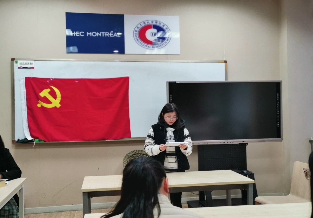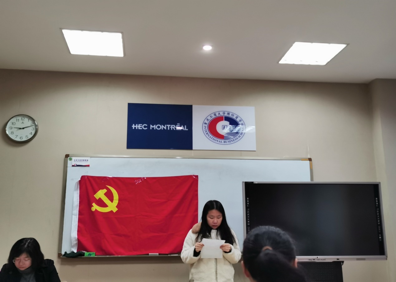 之后由入党介绍人进行介绍和发表意见。入党介绍人张静老师同意田雨馨、邹畅、唐蕴仪三位同志按期转正,认为田雨馨同志待人真诚,时刻充满积极阳光,带给人正能量,学习成绩优异,不仅工作时认真负责,平时生活中也是积极向上乐观开朗,热爱同学积极帮助他人;认为邹畅同志平时能够严格要求自己,努力克服缺点,在工作中发挥了骨干带头作用。思想品德端正,团结同志,对党忠诚老实,为人正派,有为共产主义奋斗终身的决心;认为唐蕴仪同志在政治思想上自觉地同以江泽民同志为核心的党中央保持一致,坚持四项基本原则,注意学习马列主义、毛泽东思想、邓小平理论和党的基本知识,对党的认识正确,入党动机端正。