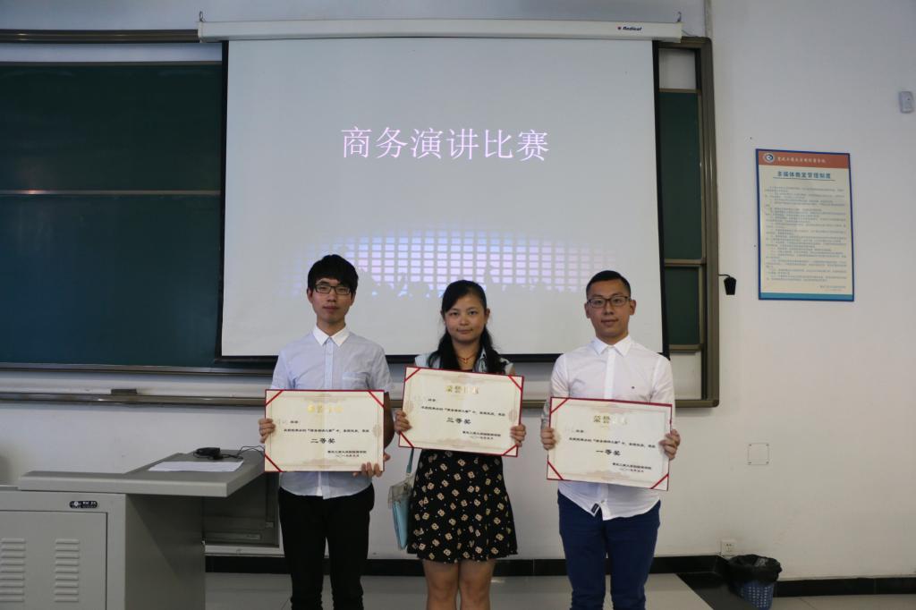 2015年5月8日下午14:00,为响应学院“321工程”的号召,院学生会宣传部承办的第一届商务演讲比赛于60405教室成功举行。担任本次比赛的评委有:演讲与口才协会会长陈章良、聚创社社长张炽及我校十佳主持人余鑫龙,并由学院学生代表担任大众评审团。