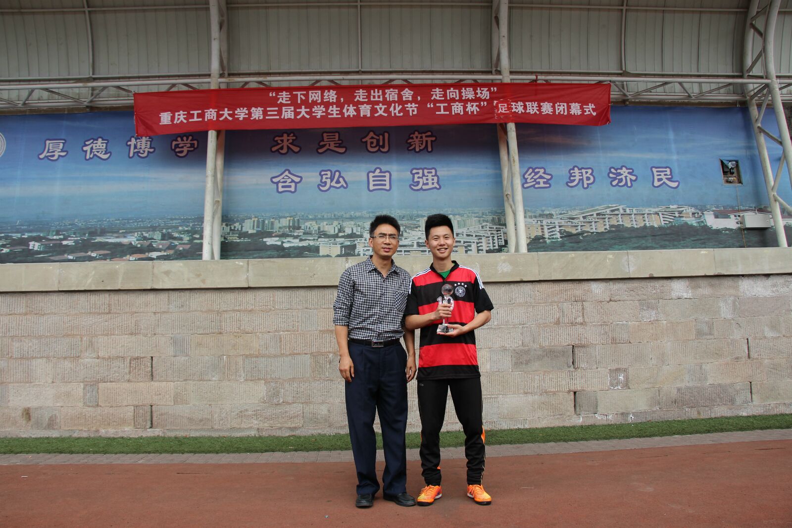 5月26日下午3:30,第三届体育文化节之“工商杯”足球联赛闭幕式在主校南区足球场圆满落幕,本次比赛由校团委、校体委联合主办的以“走下网络,走出宿舍,走向操场”为主题,历时一个多月,来自全校17个学院3个校区的400余名学生参加了比赛。