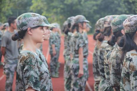 在训练场地,学子们由“新生”变成“新兵”,大踏步地列队行进,举手投足间少了些许懒散,多了几分锐气;失了些许倦怠,添了几抹英气。训练的日子的确有些枯燥,有我们流下的汗水,忍过的痛,享受过的欢笑与激昂,但我相信大家收获的更多是快乐与感动。休息时,大家都抱怨着军训的艰辛,可是到了训练场上,无论是大雨还是烈日,没有人主动退出。我们一群人在用自己的坚持诠释着另一种“言行不一”。