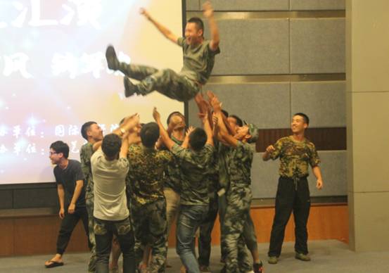 表演过程中设置的互动环节“军歌接龙”和“你比我猜”,每个连队在教官的带领下踊跃参与,全场气氛达到高潮。