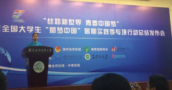 年11月30日,“丝路新世界·青春中国梦”2015年全国大学生“圆梦中国”暑期社会实践专项行动总结发布会在对外经济贸易大学举行。
