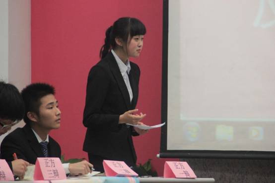 在本次比赛中,工商一班以“公益事业商业化运作利大于弊”为正方,中法一班以“公益事业商业化运作弊大于利”为反方。首先,比赛一开始,双方辩手神采飞扬,双方一辩互不相让,列出一系列的论点支持自己的观点。然后,在正反方盘问环节时,反方二辩妙语连珠,赢得满堂喝彩。紧接着,自由辩论环节,辩手们唇枪舌战,针锋相对,将本场比赛推向了高潮。在下一个环节时,双方四辩在攻破对方的漏洞之后,对各自的辩题进行了深入的总结。在观众提问环节时,现场十分活跃,多名观众各抒己见,扩大了该辩题的参与度。最后,由评委校辩论队队长肖海对本次比赛进行点评,并由主席宣布最佳辩手为反方二辩肖洁岚,获胜方为正方工商一班代表队。