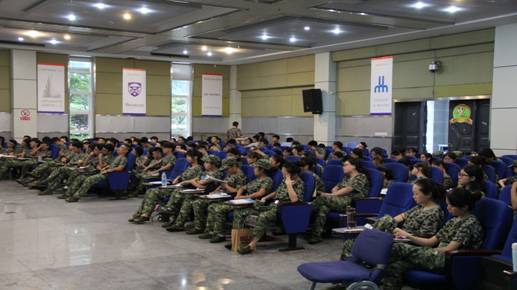除了绿茵场上有我们勤奋的身影,我们还有军事理论课程,没有了灼烈的阳光或冰冷的雨水,坐在教室里的我们也没有懈怠,认真听课,更好地了解了我国的国防,军事思想,世界军事 ,军事高科技等等,以便我们掌握基本军事理论与军事技能,达到增强国防观念和国家安全意识,强化爱国主义,集体主义观念,加强组织和纪律性,促进我们综合素质的提高.这段时间的理论课对我来说也是一次全面的爱国主义教育,让我增加了对伟大祖国的热爱。我们不仅有权爱国,而且爱国是一种义务、一种光荣。