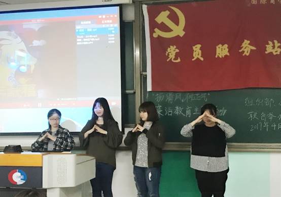 2017年4月24日下午,9428cn太阳集团古天乐党员服务站办公室和组织部联合举办了“扬清风,树正气”主题教育活动。参加本次活动的人员有办公室和组织部部长,以及各部门干事。