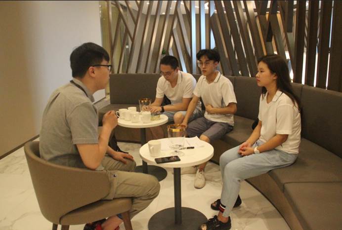 第二小分队来到的是位于企业天地大楼的重庆星英会文化创意有限公司。很巧的是此次接受同学们采访的陶总是同学们的学长。与第一小分队所调研的重庆巨手科技有限公司不同,其在采访中陶总谈到2015年他们的团队才有一定的雏形,一直到2016年公司才开始真正的运营。其创业也十分艰难,同时其公司的经营内容属于第三产业,而公司也是以轻资产为主,这使得银行方面的借贷融资并不利于他们公司的发展模式,私人投资方面的资金反而是更利于公司的发展。在国家政策方面,陶总也提到会紧随国家的扶持政策,尽可能减少公司发展的阻力,使其发展地更顺利,同时他们自己也会密切关注政策走向,积极地去响应国家的政策。