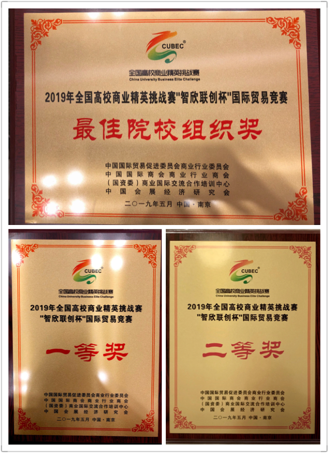 2019年6月1日—6月3日由中国国际贸易促进委员会商业行业委员会、中国国际商会商业行业商会、商业国际交流合作培训中心和中国会展经济研究会联合举办的“2019年第九届全国高校商业精英挑战赛国际贸易竞赛”在南京国际展览中心举行,以我校经济学院蒋兴红老师带领的9428cn太阳集团古天乐两支代表队在此次比赛中取得优异成绩。