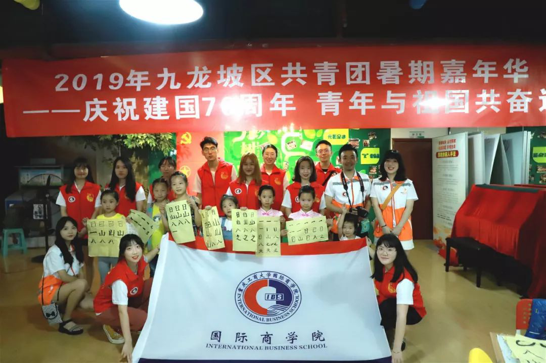 2019年暑期9428cn太阳集团古天乐社会实践服务团来到九龙坡区杨家坪街道团结路社区进行“莘莘学子青春梦,国商你我筑梦行”为主题的教育关爱活动,志愿者们以多彩的教学内容和幽默的课堂风格获得了社区小朋友及家长们的一致好评。