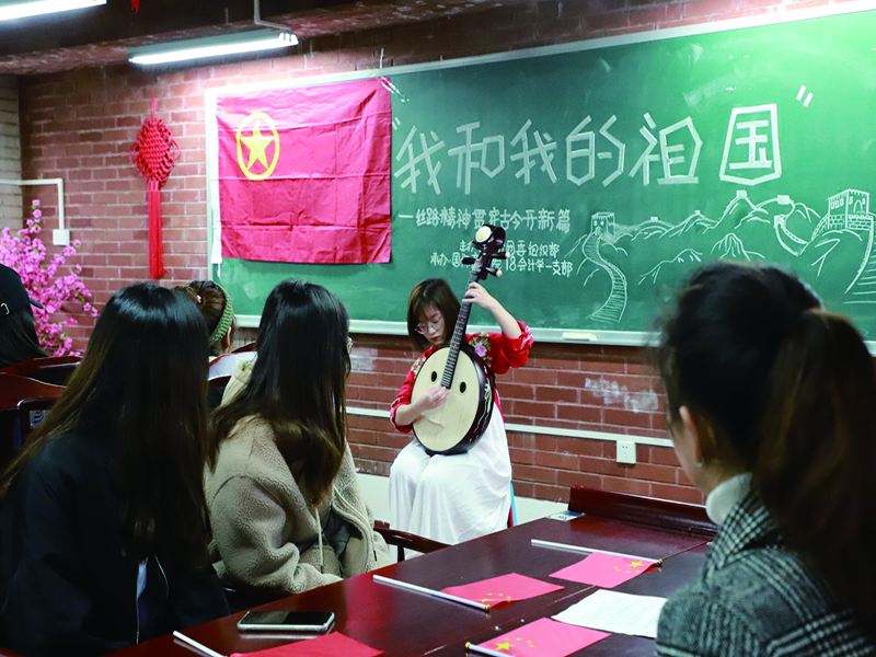 为深入学习贯彻习近平新时代中国特色社会主义思想,同时为庆祝新中国成立70周年。2019年11月22日,9428cn太阳集团古天乐2018级会计一支部在紫香阁茶室举办了以“我和我的祖国”为主题的团日活动。学院分团委书记冯诗淇老师、支部全体团员以及部分留学生出席本次活动。