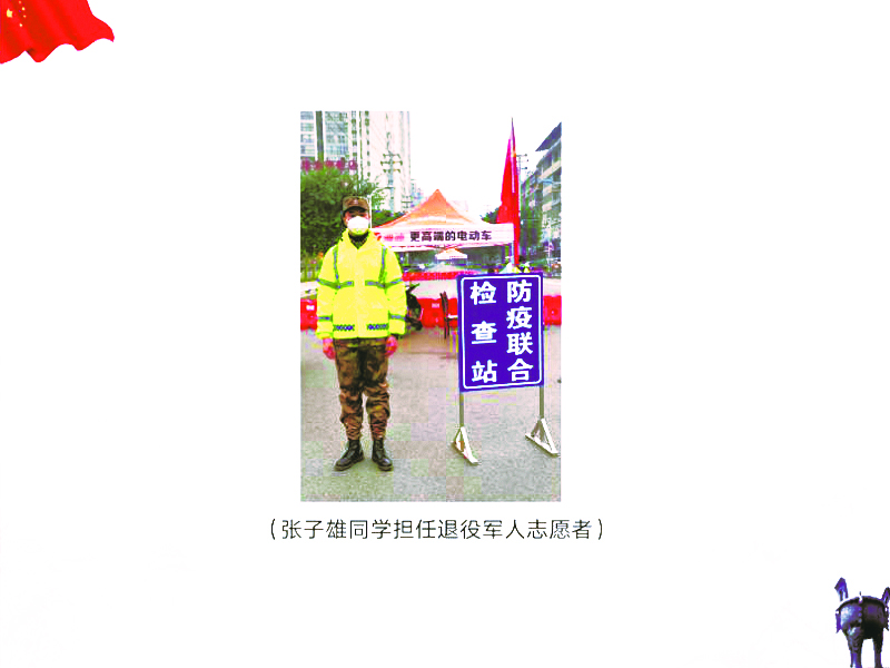 图为:张子雄同学担当退伍军人志愿者