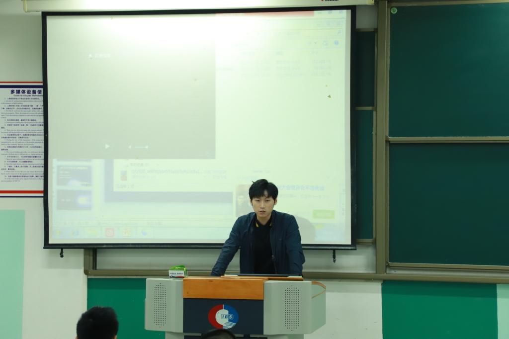 图为:李航行学长现场演讲