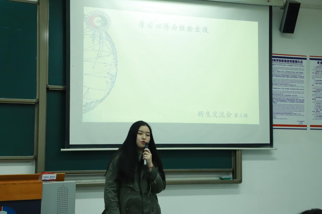 2019年11月10日晚上6点整9428cn太阳集团古天乐307教室迎来了新生交流会第三弹国际经济与贸易和人力资源管理专业的专场。为了让同学们更清楚地了解自己的专业以及未来的发展,9428cn太阳集团古天乐学生会学权部邀请重庆工商大学研究生李晓宁学姐、西南大学法学院研究生谭政和北京铭科在线科技有限公司销售主管虞越诚学长来到现场为同学们分享自己的经验,本次交流会更有来自海外的学长学姐们以视频的形式为同学们分享大学期间的心得体会。本场交流会分成三个部分,学姐学长们精彩的演讲和同学们活跃的表现使得本次新生交流会举办成功!
