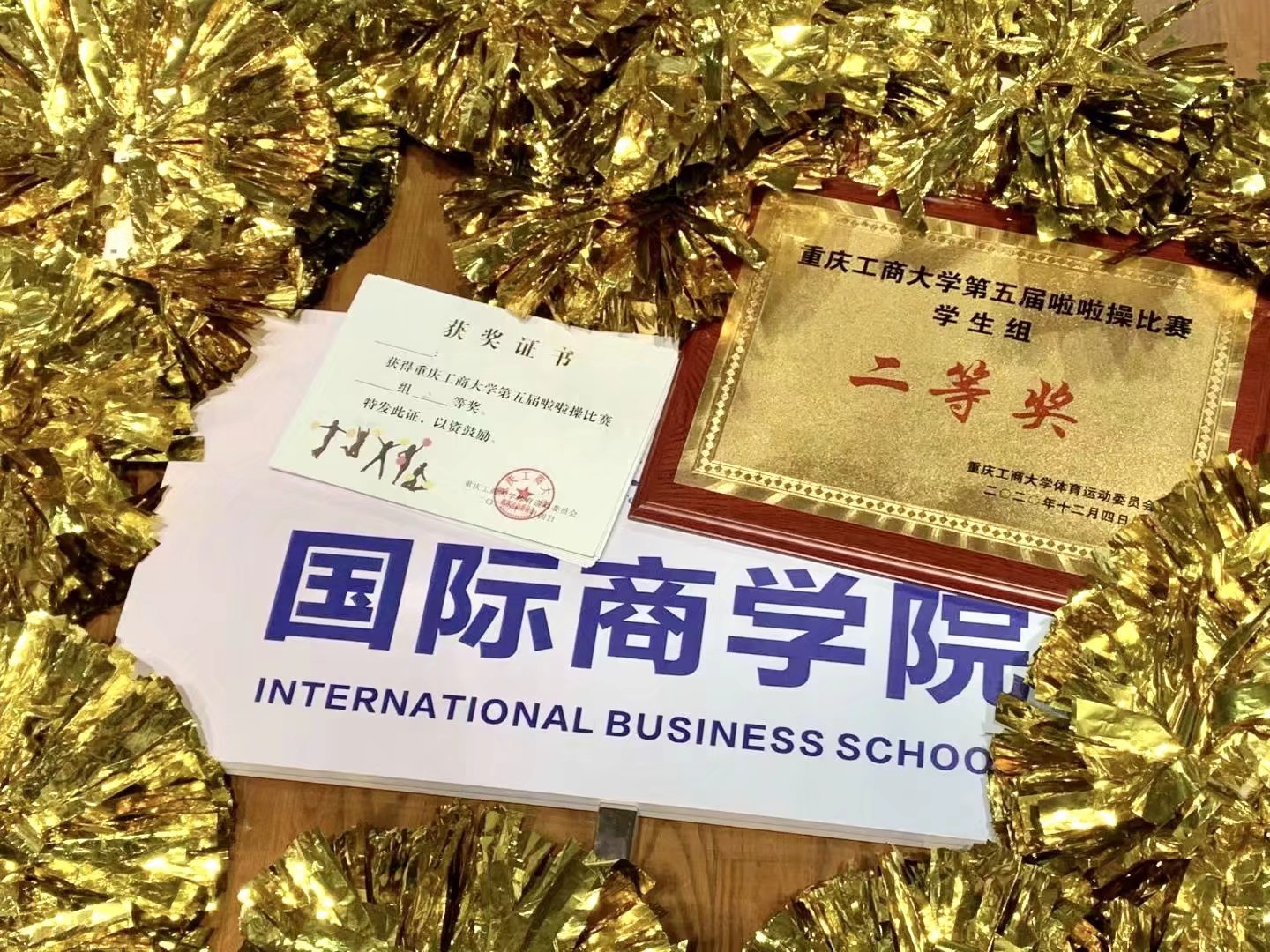 轻盈的脚步,灵动的身姿,国商学子在赛场上神采飞扬,以肢体演绎青年大学生们的活力之美,青春之美。为了为学院争得荣誉,过去几周见缝插针的紧张训练中队员们毫无怨言,勤奋苦练。夜色中,路灯下,闪闪发光的花球和汗水相映,是国商学子坚持不懈,团结协作的最好写照;而获奖后大家发自内心的笑容更是给自己,给国商的最好答卷。
