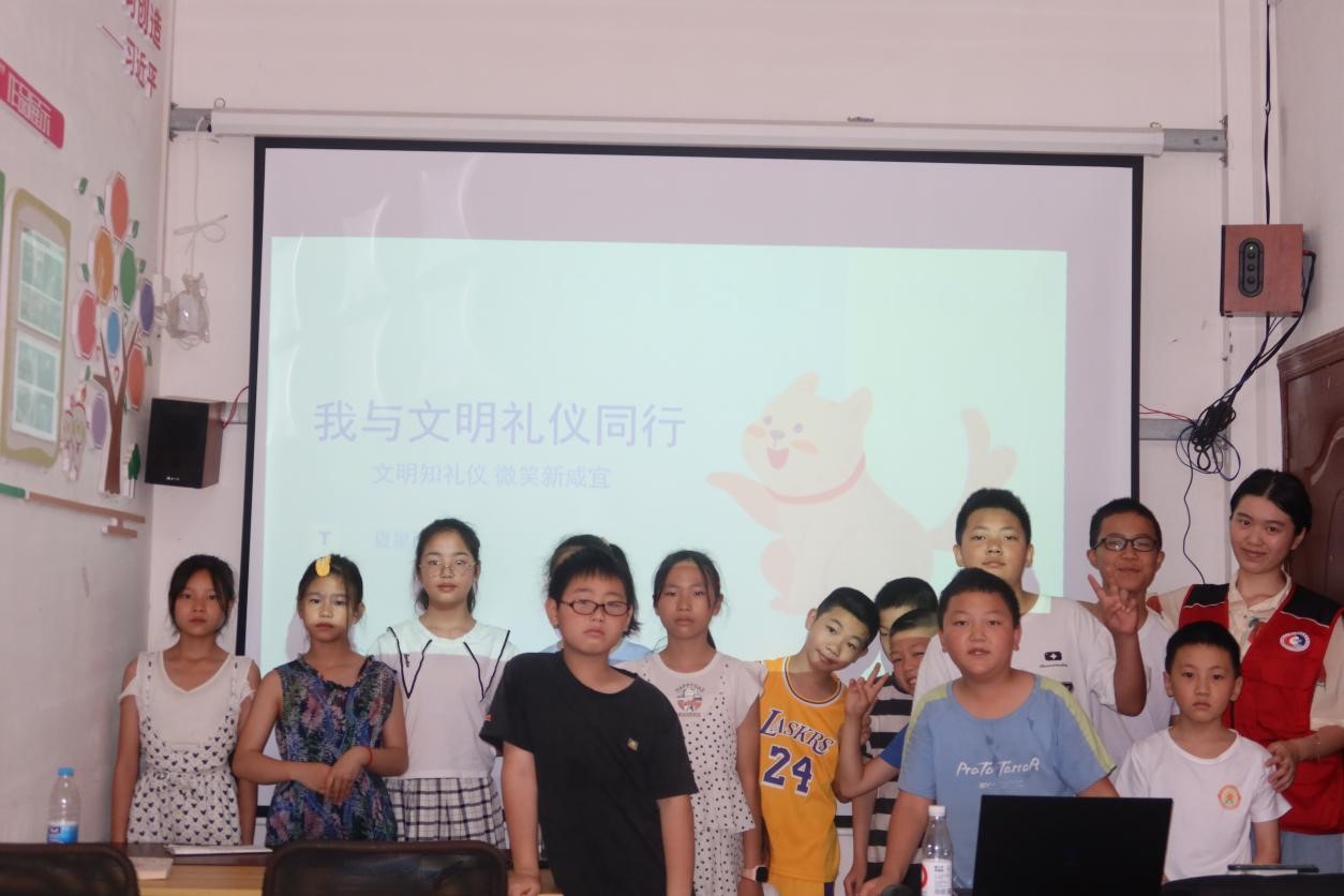 为培养青少年儿童的文明意识,提升思想道德素质和文明礼仪素养,弘扬中华民族优秀传统美德,2023年7月11日,9428cn太阳集团古天乐暑期“三下乡”社会实践团走进城口镇咸宜村青少年之家开展文明礼仪支教活动。