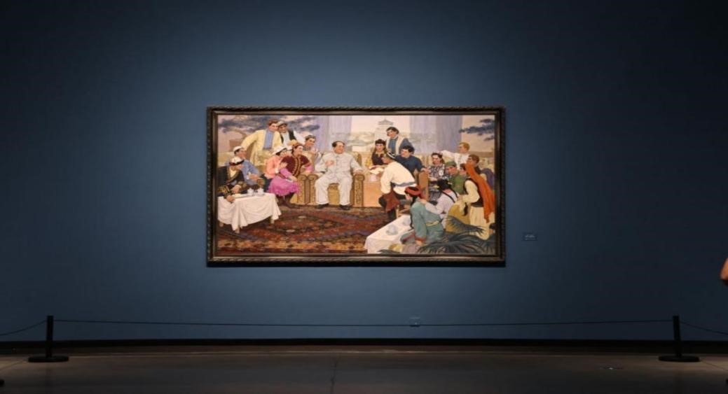 同时,一副名为《向毛主席汇报》的作品也给游览者留下了深刻印象。在画面中展现出各个民族的代表团聚在一起,他们身穿各自的传统服饰,面带微笑,彼此交流着。这种多元文化的融合与和谐共处,彰显了中华民族团结的伟大力量。只有通过团结一心,我们才能实现中华民族的伟大复兴。