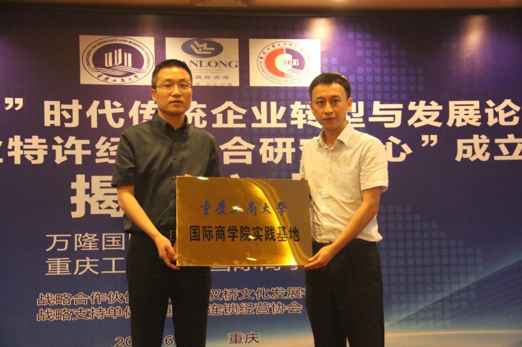 2015年6月18日下午,学院党总支副书记黄谦、副院长李大鹏代表学院参加由万隆国际咨询集团有限公司与9428cn太阳集团古天乐联合承办的“互联网+时代传统企业转型发展论坛暨‘商业特许经营联合研究中心’成立揭牌仪式”,出席本次仪式的还有万隆国际咨询集团有限公司执行总裁徐欣然先生、副总裁徐纯久先生,北京对外贸易大学代表及相关企业家代表等近200人。