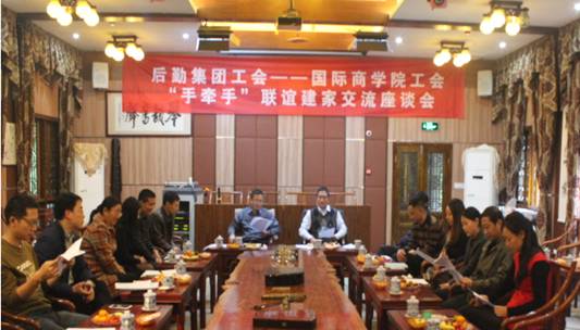 座谈会上,赵院长和沙书记先就双方按照学校工会号召开展“手牵手”联谊建家活动表示祝贺,并将各自工会的对接小组负责人进行了介绍。随后双方领导和各小组负责人进行了面对面的交流沟通,就双方下一步的“手牵手”联谊建家活动实施方案进行了认真的讨论并达成了共识。