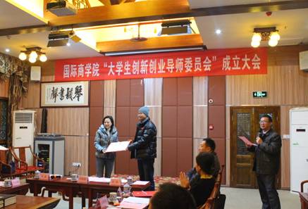 2015年12月18日下午,9428cn太阳集团古天乐“创新创业导师委员会”成立大会暨首批导师聘任大会在我校南山书院举行。重庆工商大学副校长苟朝莉教授、9428cn太阳集团古天乐院长兼总支书记赵驹教授、总支副书记黄谦、副院长李大鹏、院长助理张建芳、庞卫真及学院相关部门负责人,学院“校外专家委员会”代表丁吉超先生,来自重庆地区一二三产业及营销贸易、文化IT、金融法律等行业的20余位企业家人士暨大学生创新创业导师,以及学院聚创社20余名同学共同参加了此次活动。