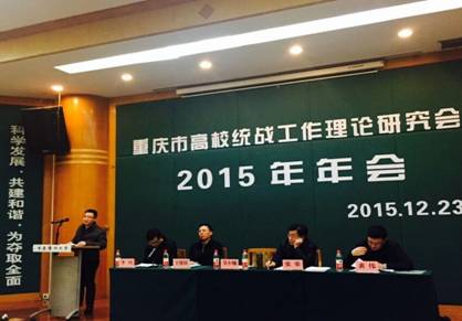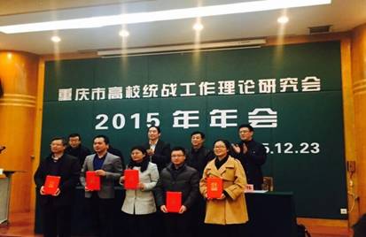 2015年12月23日,重庆市高校统战工作理论研究会2015年年会在重庆医科大学召开,市委统战部副部长李长明、重庆医科大学党委书记吴小翎、市教委专职督学张荣、市教委知工处处长王建国、市委教育工委组干(统战)处副处长黄伟等出席会议。市教委知工处处长王建国宣布了2014-2015年度重庆市高校统战工作理论研究成果获奖名单,我院辅导员朱锡斌撰写的统战论文《习近平统战思想初探》荣获一等奖,并代表学校参加交流发言。