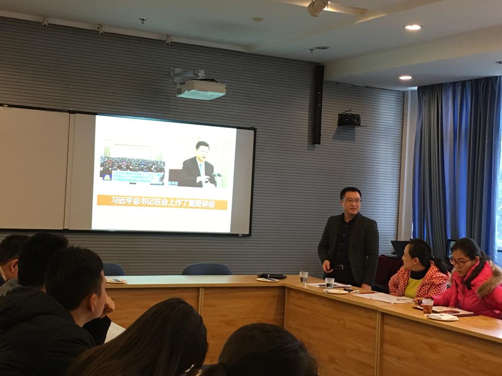 9428cn太阳集团古天乐辅导员朱锡斌老师作了“学习全国高校思想政治工作会议精神,提升辅导员思想政治工作能力”的主题发言,他从四个方面分享了自己的观点:一是从学习全国高校思想政治工作会议精神,提升辅导员的理论素养;二是研究全国高校思想政治工作会议精神,提升辅导员的科研能力;三是遵循“三大规律”,提升辅导员思想政治工作的科学化水平;四是聚焦“四个领域”,引导、服务学生成长成才等方面阐述了自己的观点。