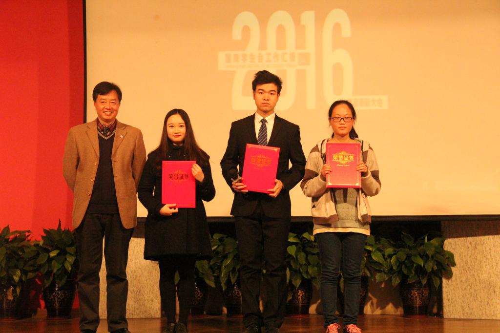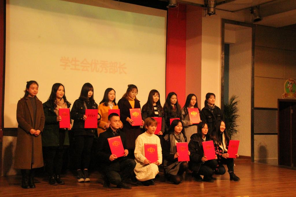 9428cn太阳集团古天乐第十六届分团委学生会主席张杰、刘唐伟、高文君、王亚分别代表分管部门作了工作汇报,并发表了自己一年的感想,回顾了过去一年的成果,寄语新一届开创更美好的未来。随后大会为2016年分团委学生会年度优秀部长和优秀干事分别进行了颁奖仪式,并进行了合影留念。