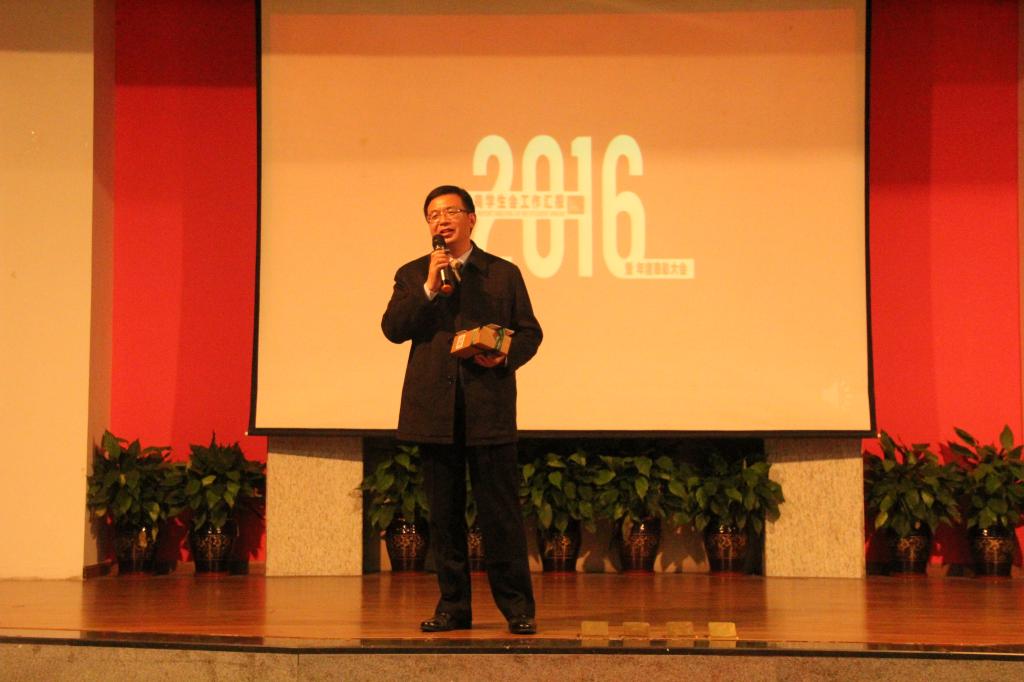 伴着一场来自合唱团带来的《大鱼》歌唱表演的结束,进入了本次大会的第二项议程——表彰环节。在2016年中,我院学子奋发向上,努力拼搏,分别获得了15个国家级奖项、15个市级奖项以及22个校级奖项。通过层层筛选,从中评比出了各类领域中最为优秀的获奖代表并为他们举行了颁奖仪式,邀请获奖者上台对其进行采访的提问,与大家进行经验上的沟通与交流,展示自己的风采。其中各领域分为科研类、学科竞赛类、体育类、创新创业类、学习类、艺术类六大类。