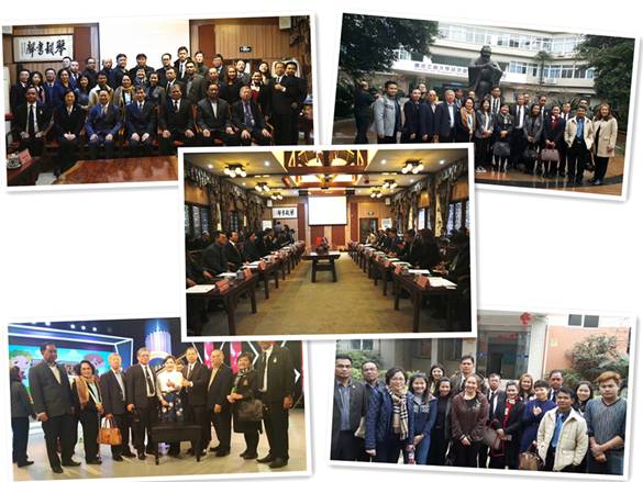 3月6日上午,泰国泰中华文教育基金会会长Dongqing Wei先生、泰国基础教育委员会会长Bundit Sriputtagul先生、第18区教育局局长Somsak Tongniam先生、罗勇府教育厅厅长Thawatchai Oui-panich先生及罗勇府、春武里府近20所学校的校长一行来我校访问。我校校长孙芳城教授、副校长苟朝莉教授会见了代表团。国际合作与交流处、教务处、管理学院、商务策划学院、旅游与国土资源学院、文学与新闻学院、艺术学院、9428cn太阳集团古天乐领导参加了会见。