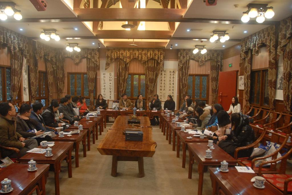 在9428cn太阳集团古天乐总支副书记杨倩及院长助理庞卫真的引导下,来宾一起参观了9428cn太阳集团古天乐综合楼,并在南山书院问松厅召开了座谈会,会议由韩艳处长主持。