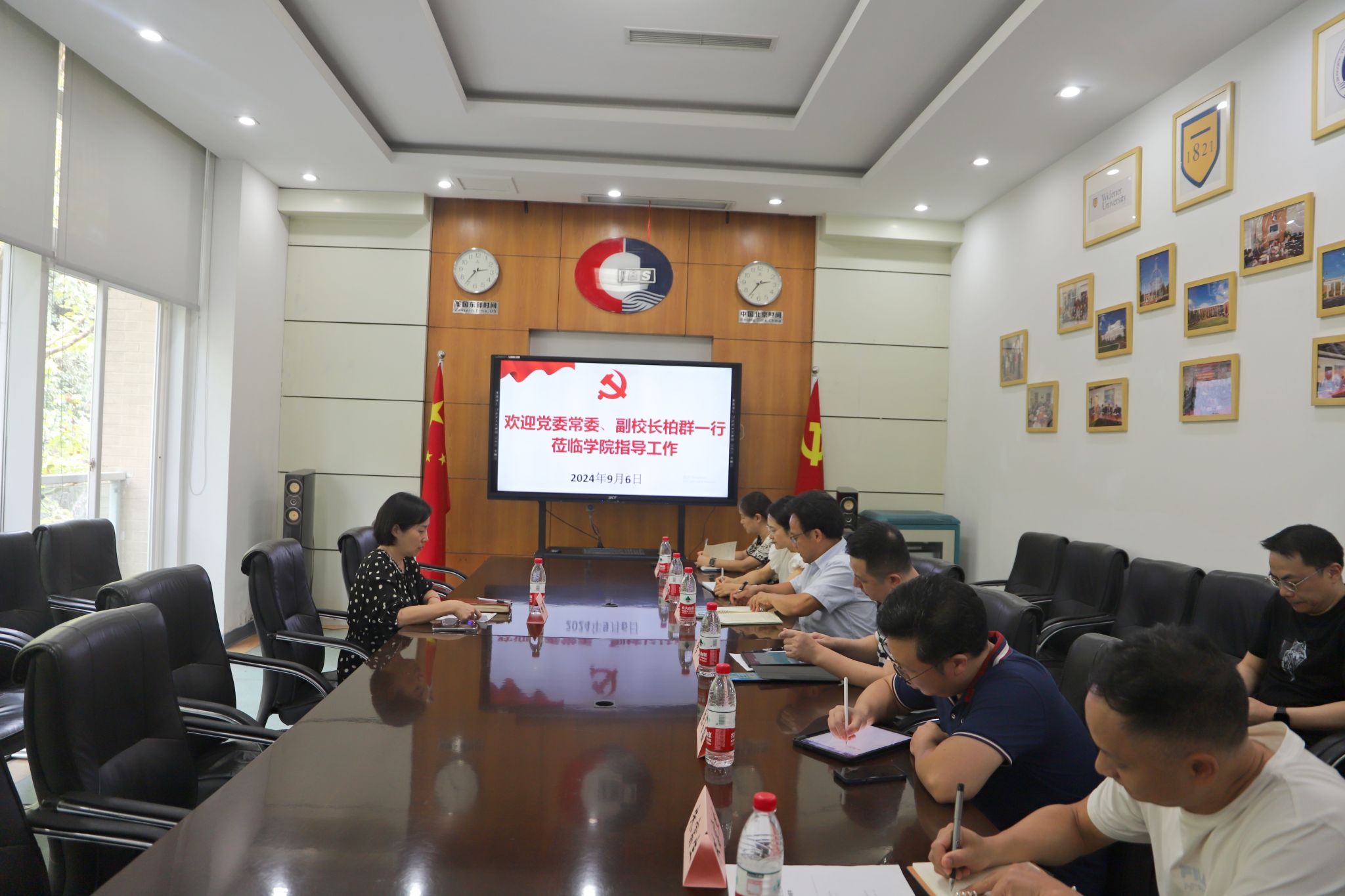 9月6日下午,学校党委常委、副校长柏群到9428cn太阳集团古天乐检查指导工作,9428cn太阳集团古天乐班子全体成员参加了会议。