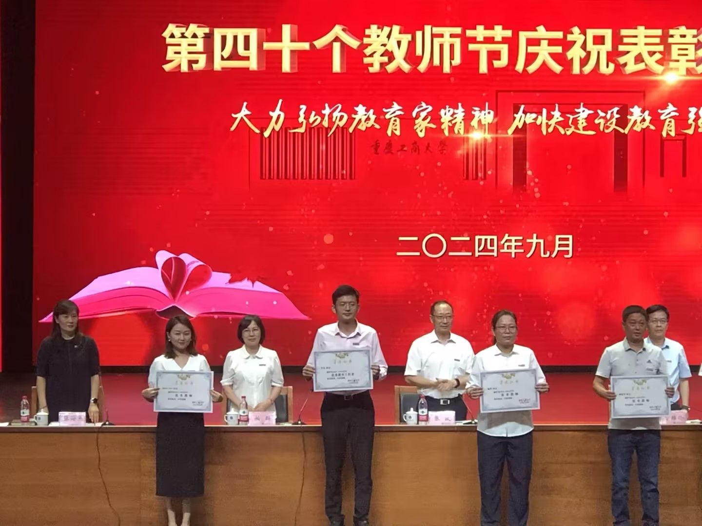 2024年9月10日重庆工商大学“第四十个教师节庆祝表彰大会”在学校演播大厅隆重召开, 我院长期英语外教Sun Ming老师荣获重庆工商大学2023-2024年度优秀教师。