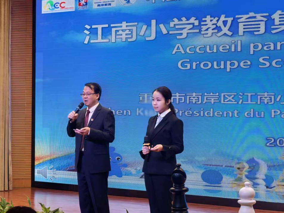 11月26日下午3时,"中法人文交流周"闭幕式暨颁奖典礼在江南小学学术报告厅举行。杨蕙宁同学再次担任法语翻译主持人,与江南小学副校长共同总结活动成果、表彰代表团成员及江南小学同学们,为本次中法人文交流活动画上圆满句号。