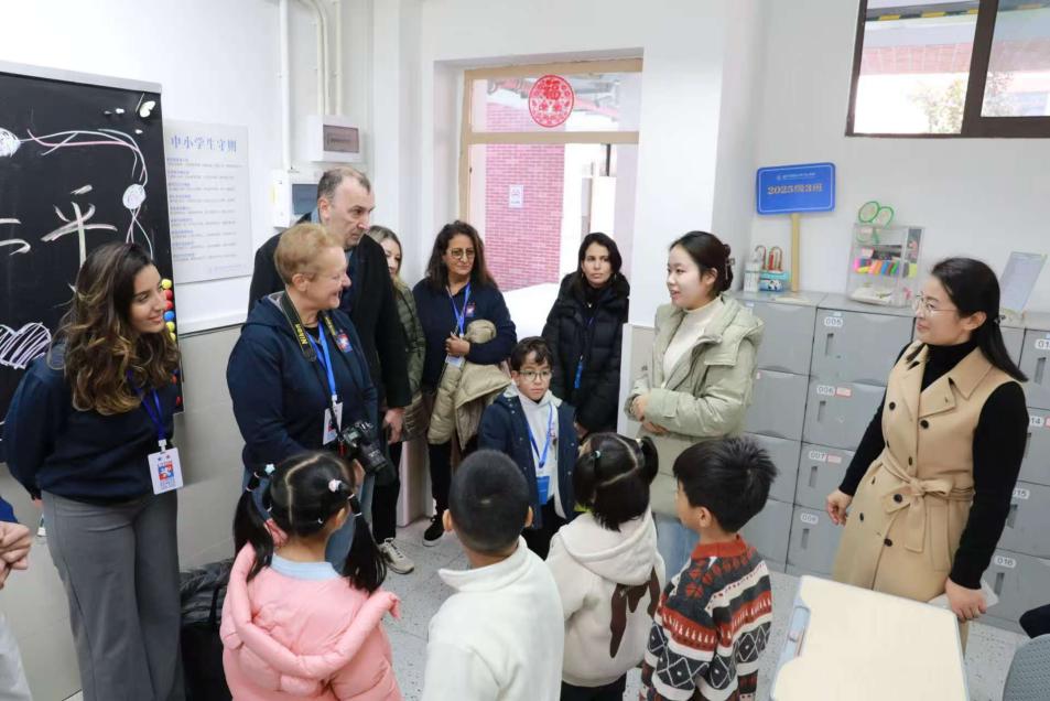 11月26日,代表团一行前往江南小学教育集团联校广茂小学与黄桷垭小学参观交流。在两所学校的社团活动现场,三位同学全程提供口译服务,协助法国代表团体验象棋对弈、编程实践、版画创作等特色课程。面对版画制作中的专业技法讲解、编程课程的技术术语翻译等场景,她们凭借扎实的语言积累与快速反应能力,精准传递教学内容与互动信息,让法国嘉宾深度感受中国基础教育的多元特色与校园文化的独特魅力。