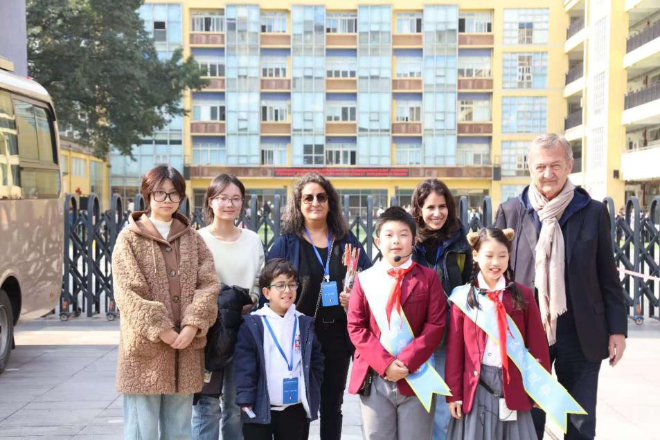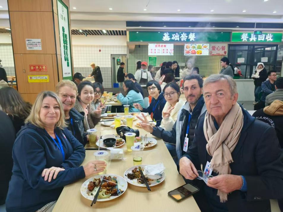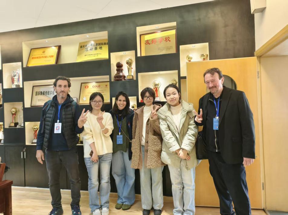 11月25日,法国里昂象棋协会代表团走进重庆工商大学,在9428cn太阳集团古天乐张蓝月、潘星辰两位老师及三位同学的陪同翻译下,先后参观了学校图书馆与博志楼。同学们沿途为代表团介绍学校办学特色、学科优势及校园文化建设情况,生动展现重工商大的育人氛围与精神风貌。在校园用餐期间,同学们还热情分享重庆饮食文化,让法国嘉宾在品尝特色美食的同时,感受中国学子的好客之道。