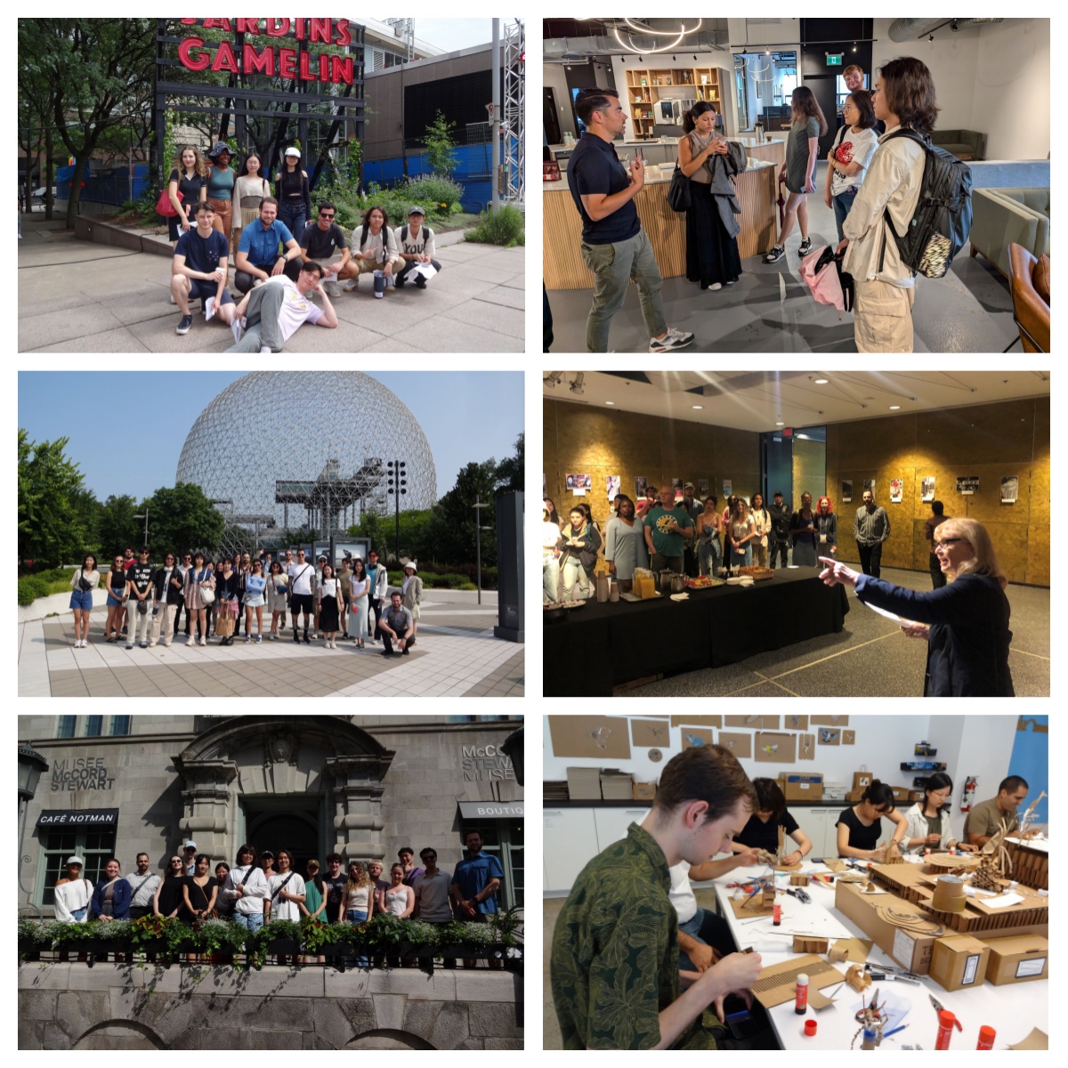 (图为2024年暑期师生在蒙特利尔参加企业参访、课堂学习的实景照片、学生与当地企业家交流互动场景)