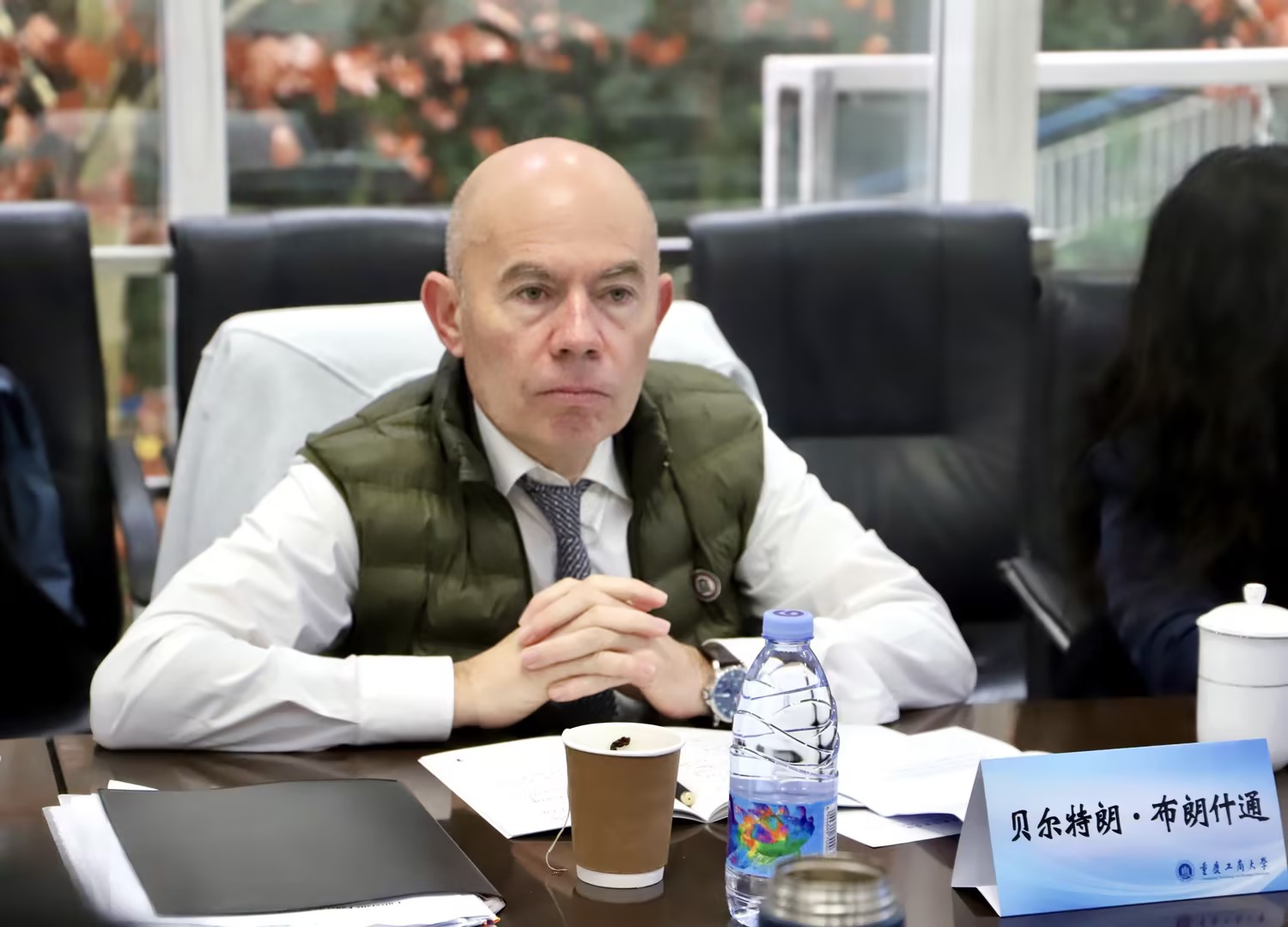 2025年12月25日上午,法国波尔多大学经济管理学院院长经济学教授Bertrand Blancheton先生和波尔多大学对中事务负责人曾祺女士一行莅临我院访问交流,双方围绕深化校际合作、推进联合项目开展等议题展开深入探讨。我院院长詹川、法语部部长张蓝月热情接待了来访嘉宾,全程陪同交流。