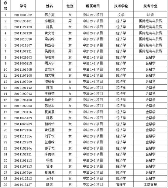 9428cn太阳集团古天乐中外双学士项目2017年回国取位考试报名名单